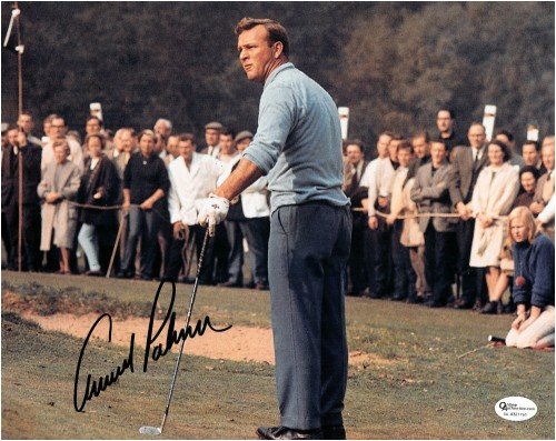Arnold Palmer has personally hand signed this 8x10 Photo with a Black sharpie pen. Awesome shot of a younger Arnie watching his shot. This item comes with a numbered Online Authentics.com authenticity sticker on the autographed photo, which you can verify online once you purchase it at Online Authentics.com, which is one of the top third party authenticators in the memorabilia industry. This item also comes with a REAL DEAL Memorabilia Certificate of Authenticity (COA).